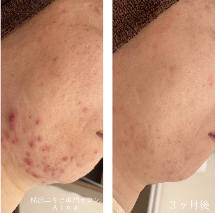 フェイスラインのニキビも、3ヶ月で、見違えるほど改善♪