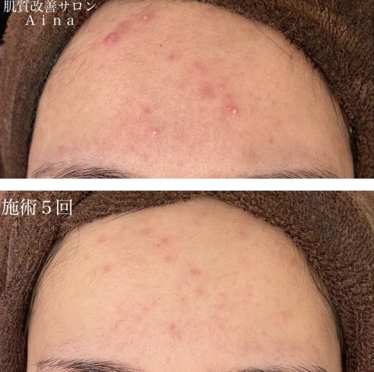 初めてお越しいただいた時にも、ニキビがあり、全体的に散在している状態でした。