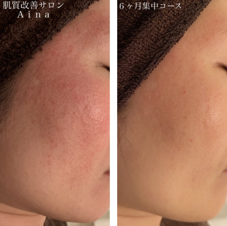 集中コースが終わる頃には、赤みも軽減され、写真でも分かるほど、なめらかな素肌になりました^^