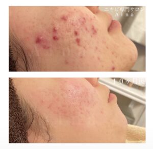 お顔全体にあった赤いニキビも、つるんとした素肌に♪