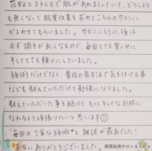 ●肌の触り心地が、明らかに変わりました こんにちは^^ 横浜で、ニキビ専門サロンを開いている益子です。 繰り返しできる、お顔のニキビ・ニキビ跡などのお悩みに特化した、フェイシャルサロンです。 ニキビ、毛穴、肌のごわつきで、肌に触るたびに、う …